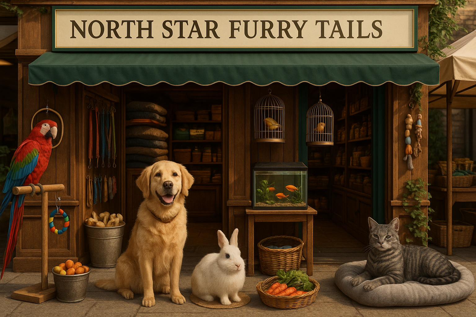 North Star Furry Tails offers Pet Toys, Pet Beds, Pet Feeding, Pet Leashes, Bird Supplies, Small Pet Accessories, Pet Clothing, Pet Grooming, Fish Accessories and supplies.